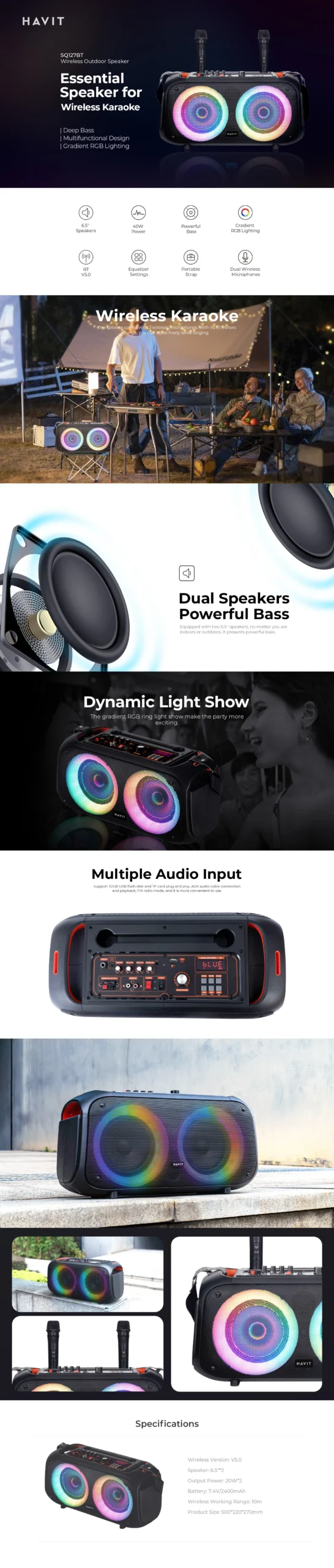 Havit Karaoke Wireless Speaker + 2 Wireless Mics